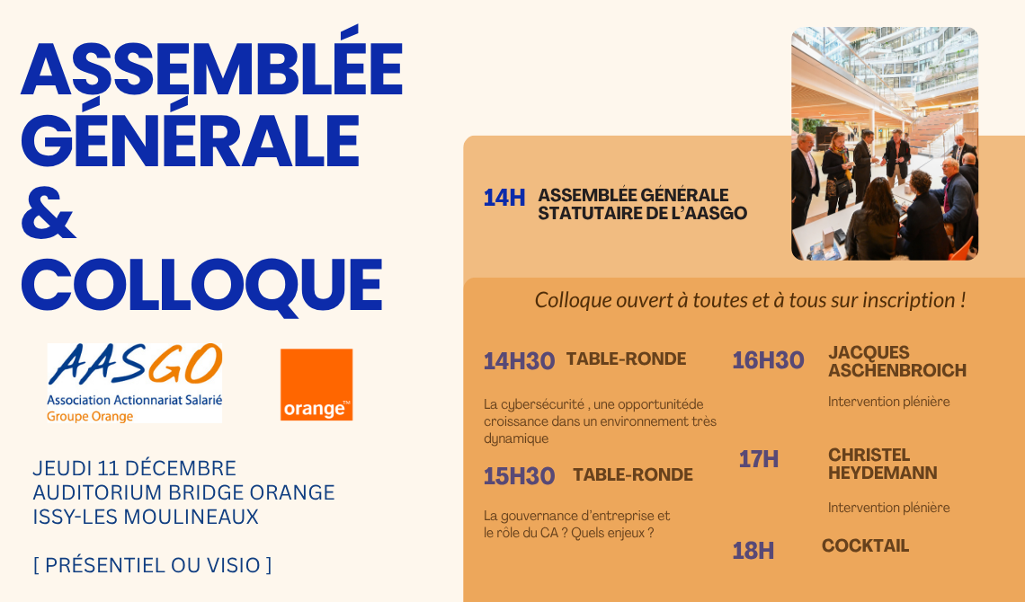 Par avance, nous vous espérons nombreux sur place, au siège de Orange à Issy-les-Moulineaux. ou derrière vos écrans pour suivre à distance les échanges.